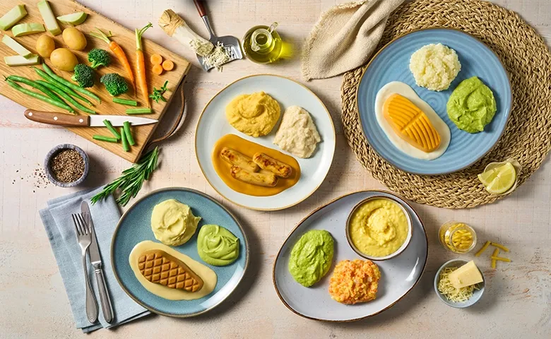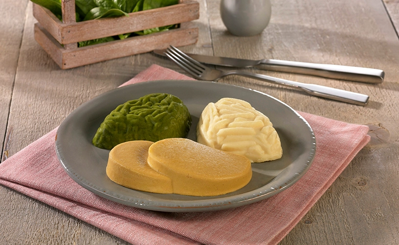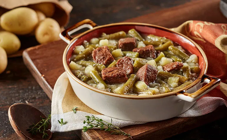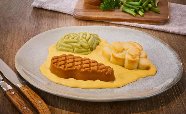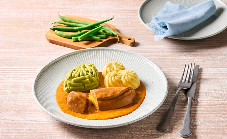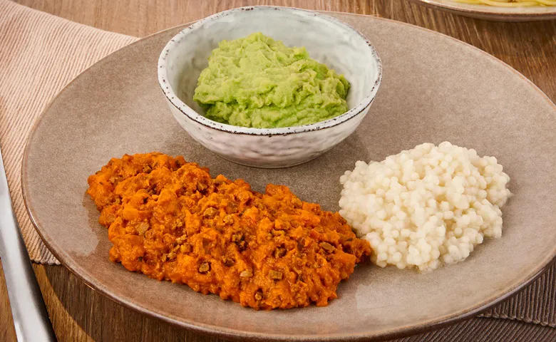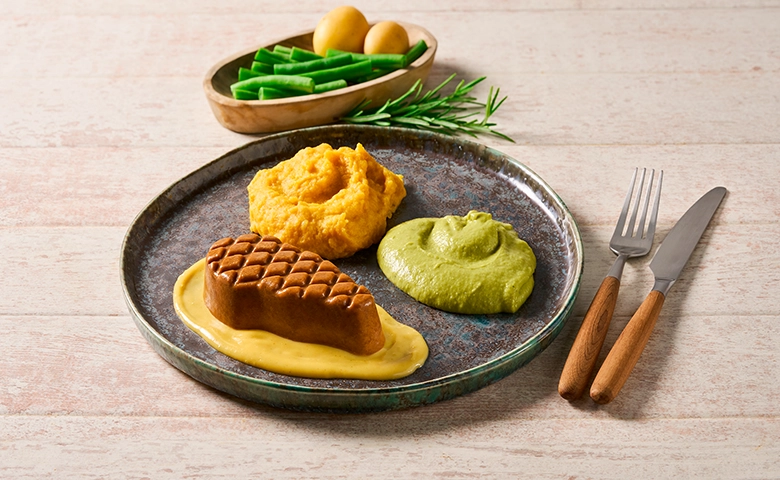 mit pürierten grünen Bohnen und Stampfkartoffeln