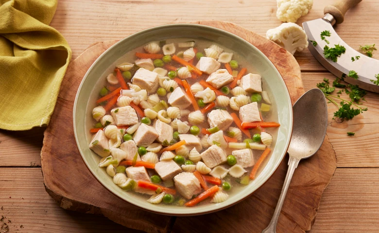 Nudelgericht mit Huhnfleisch und Gemüse