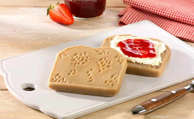 Schnitte mit Weizenbrot, belegt mit einer Käsecreme
