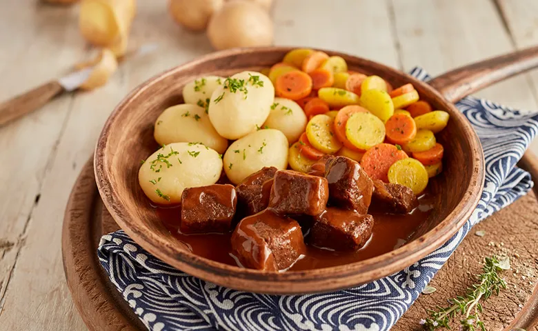 in Burgundersoße, dazu Pariser Karotten und Knöpflespätzle