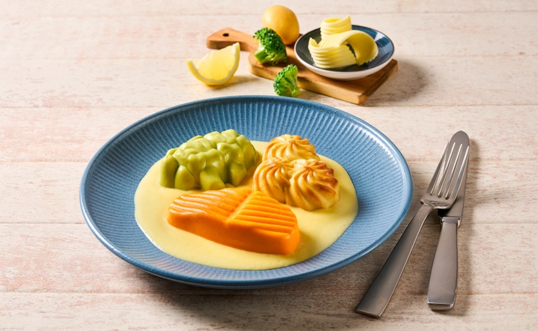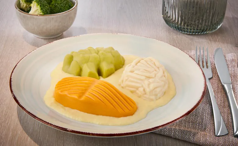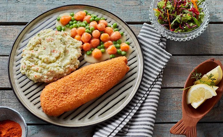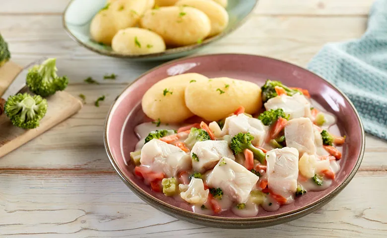 (aus nachhaltiger Fischwirtschaft) mit Möhren und Kartoffelpüree