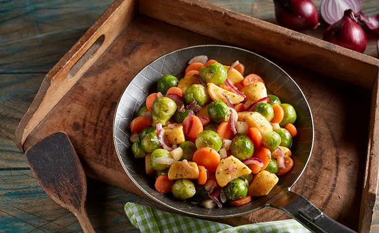 dazu Kaisergemüse und kleine Kartoffeln mit Schale