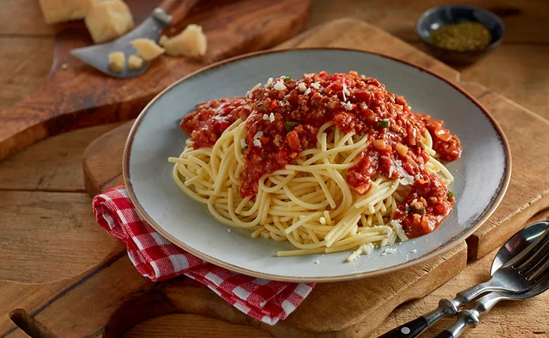 mit herzhafter Hackfleischsoße vom Rind und Schwein