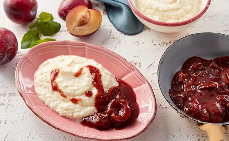 mit Pflaumenkompott (mit Süßungsmitteln)